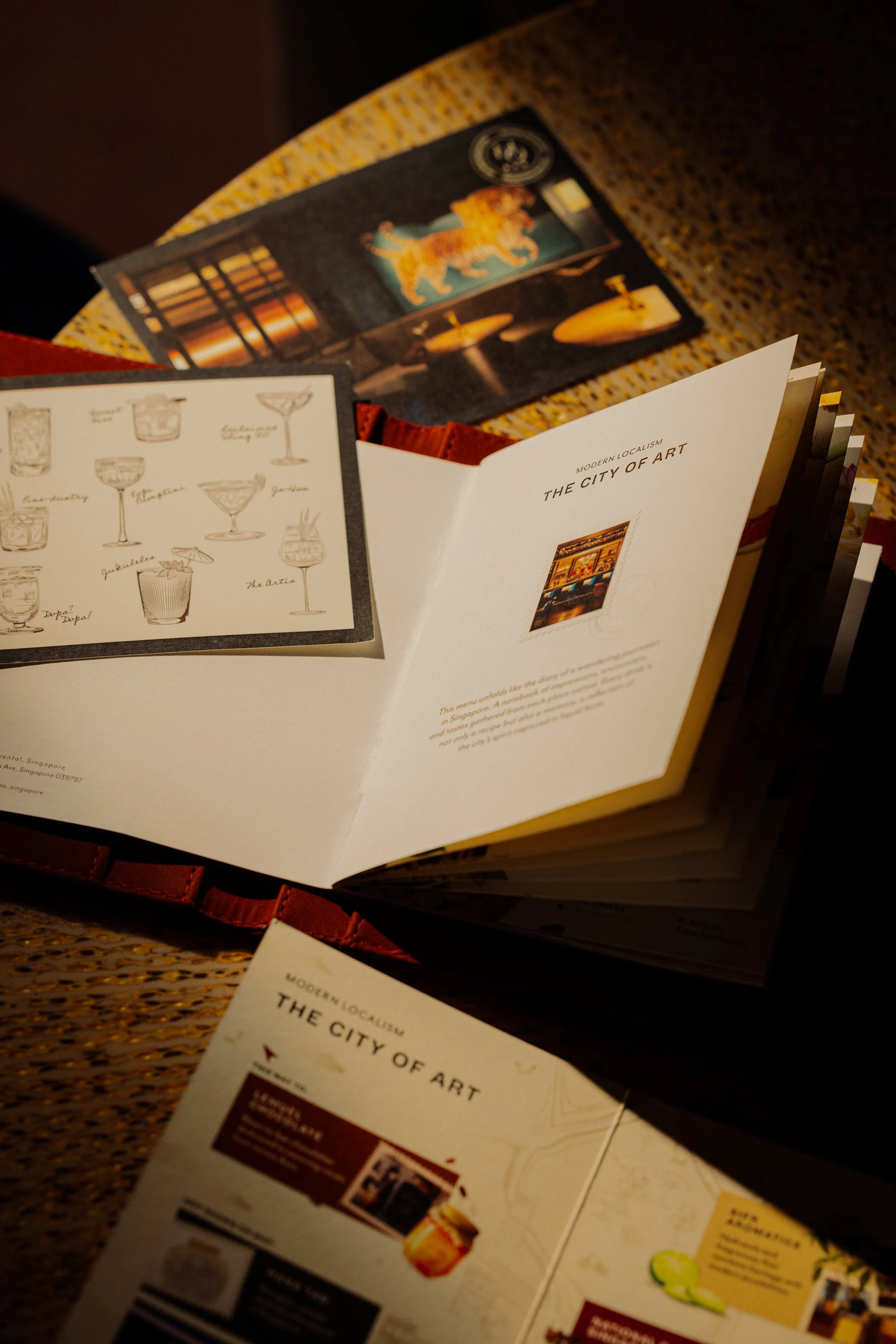 The latest menu, “The City of Art,” exemplifies this approach. Instead of building drinks in isolation, each cocktail is developed in partnership with Singapore-based creatives—artists, makers, and thinkers whose work informs both concept and flavor.