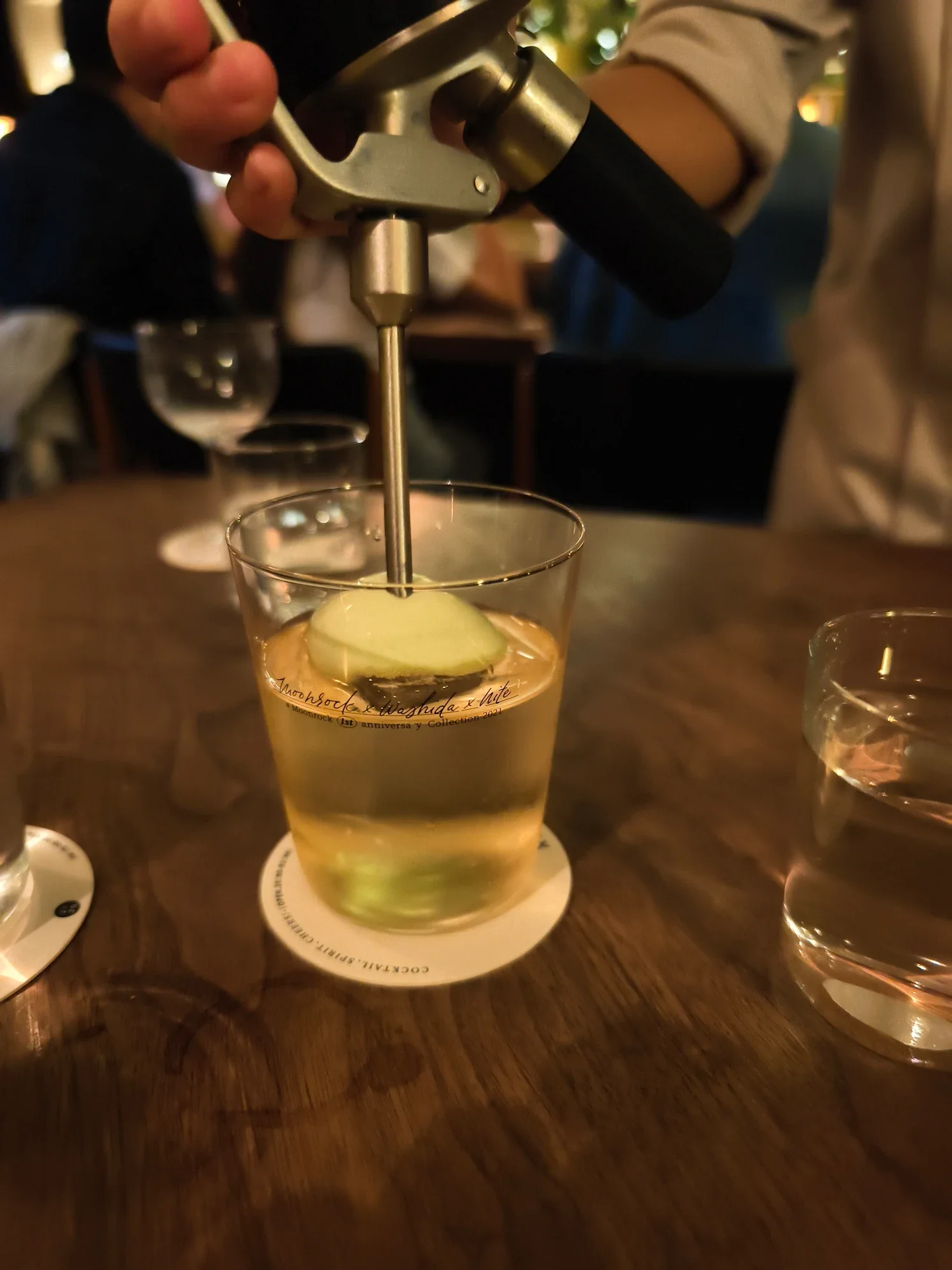 The menu, Moon Shapes, is where the emotional storytelling comes alive. Collaborations with local creatives shape each cocktail into something more than a drink. Inspired by photography, emotion and narrative, the cocktails arrive as visual and sensory expressions. Ingredients like prickly ash seeds, makao, native cacao and mountain herbs reflect Taiwan’s landscape, while textures shift from granita to espuma to clarified layers that change on the palate.